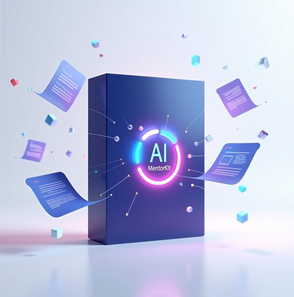 AI MentorKIT adalah paket e-course + toolkit untuk mengubah ilmu atau pengalamanmu menjadi kursus digital profesional tanpa harus tampil di kamera atau rekam suara.