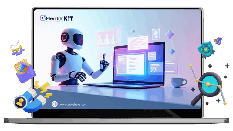 AI MentorKIT adalah e-course + toolkit praktis yang membantu kamu bikin kursus digital profesional dari ide mentah sampai video siap jual, tanpa perlu tampil di kamera atau rekam suara.